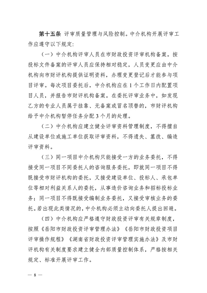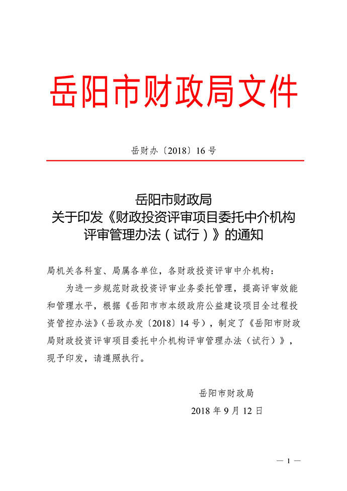 岳陽市財(cái)政局關(guān)于印發(fā)《財(cái)政投資評(píng)審項(xiàng)目委托中介機(jī)構(gòu)評(píng)審管理辦法(試行)》的通知