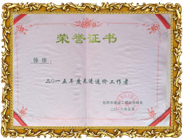我公司榮獲2015年度岳陽市工程造價協(xié)會先進(jìn)單位榮譽(yù),同時徐俊,倪娟榮獲岳陽市造價協(xié)會2015年度優(yōu)秀個人榮譽(yù)。
